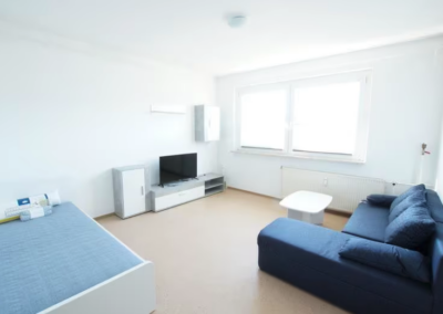 Die Wohnung ist vollständig möbliert und in einem sanierten Zustand. Sie verfügt über ein gefliestes Badezimmer mit Dusche. Es wurde PVC-Belag verlegt.